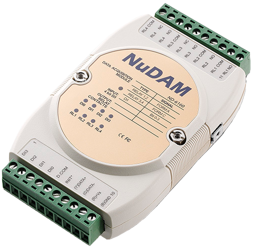 | ND‑6160 | Модуль удаленного ввода-вывода протокола Modbus с 4 цифровыми вводами и 4 релейными выводами |